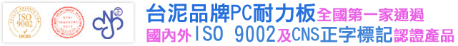 台泥品牌PC耐力板全國第一家通過國內外ISO 9002及CNS 正字標記認證產品